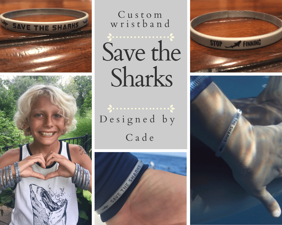 This wristband was designed by me, Cade. I came up with this idea to help save sharks. I am donating all proceeds to organizations that help save sharks. It looks really good when you wear a whole bunch!